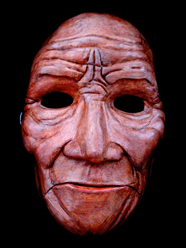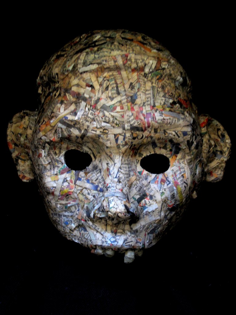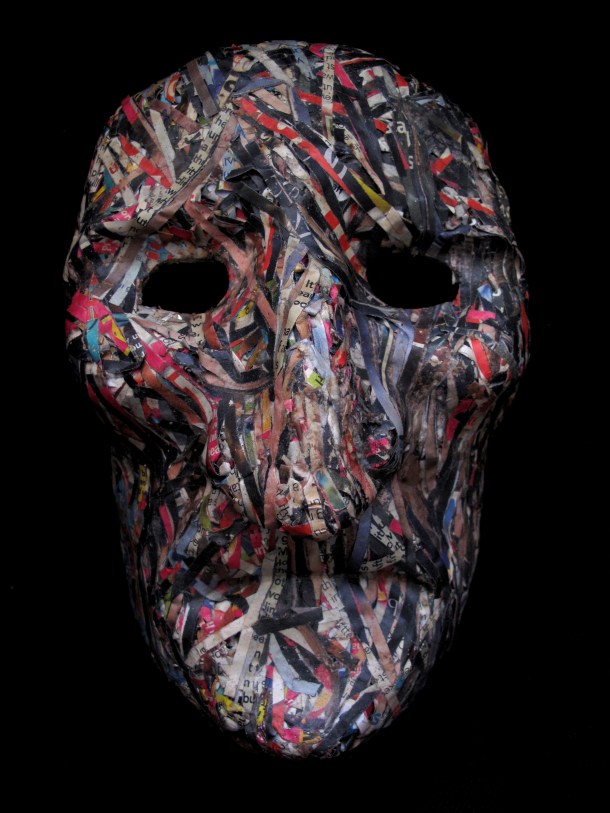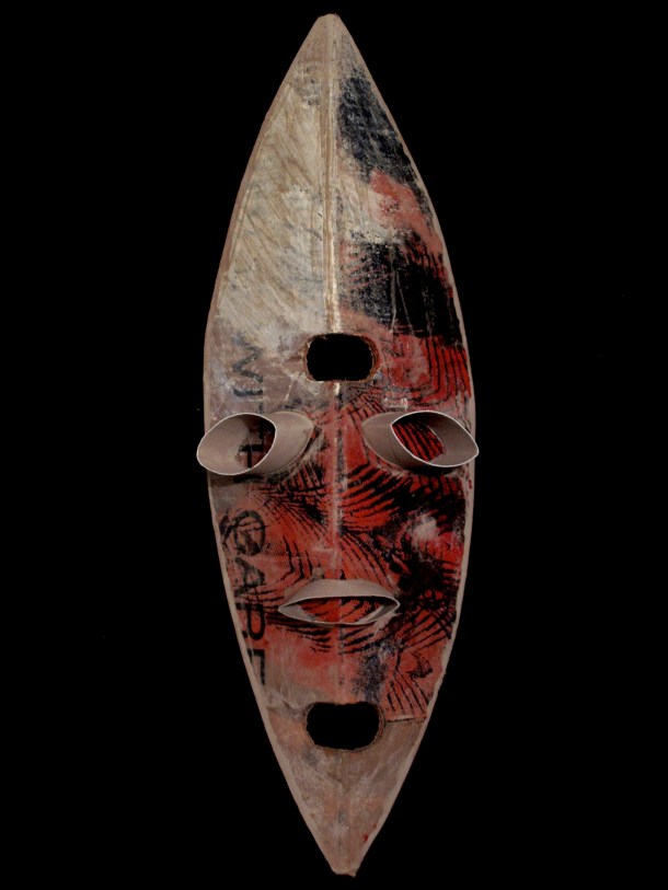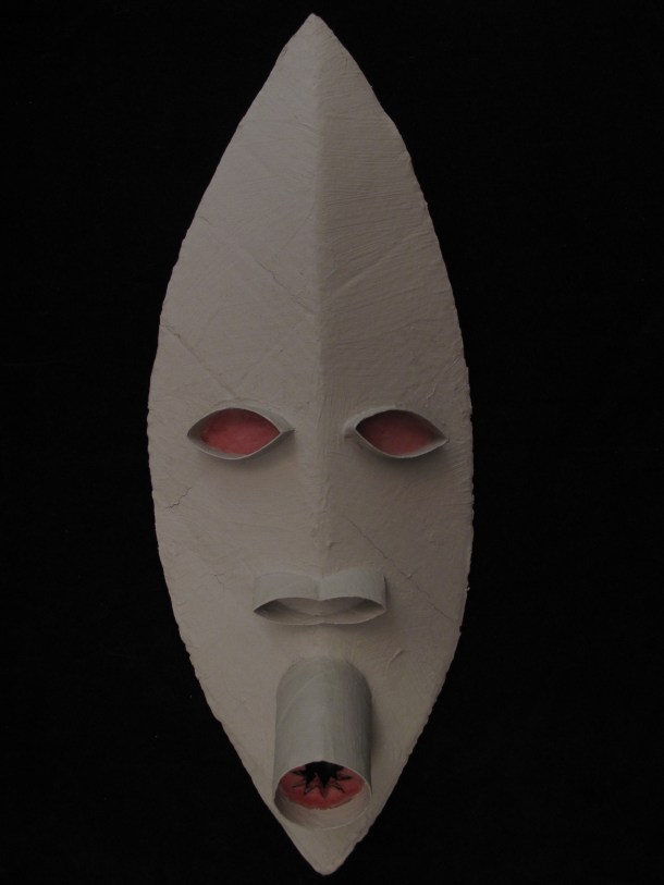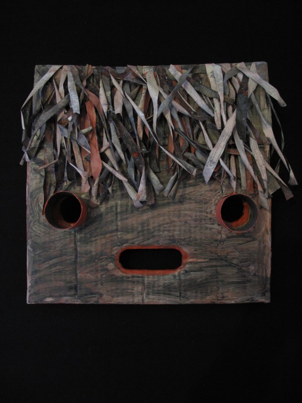 He makes masks in wood, resin, paper and using found materials. You can view three galleries of his work by clicking on the links or sliding through the images: