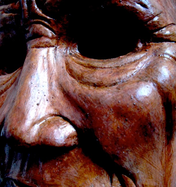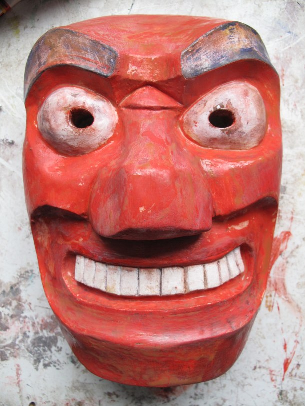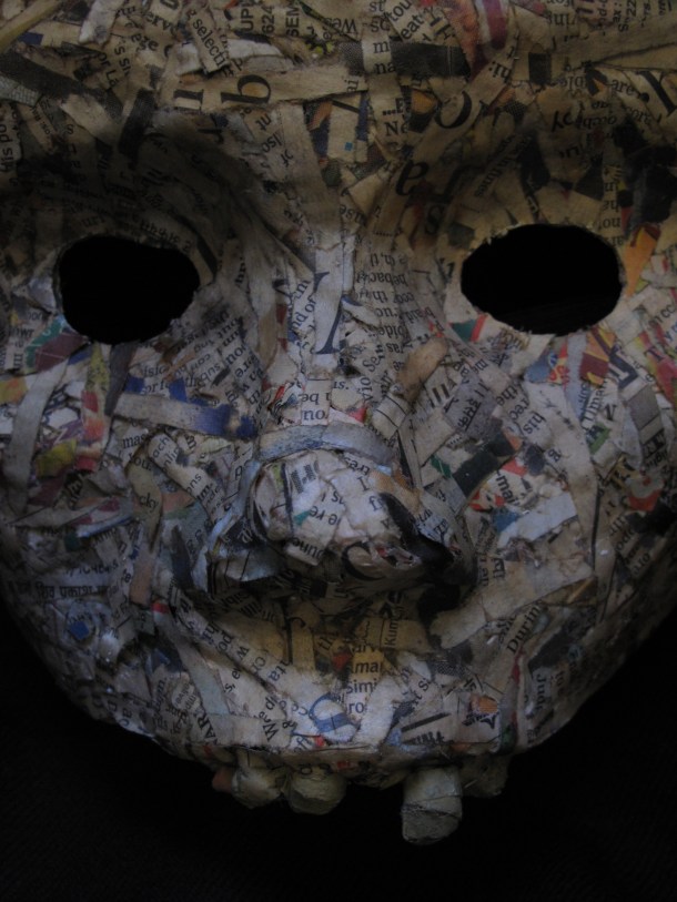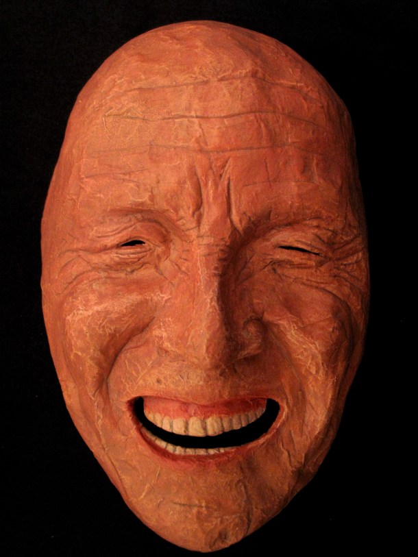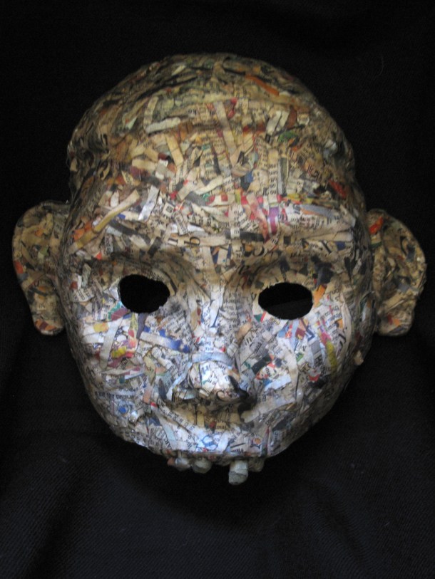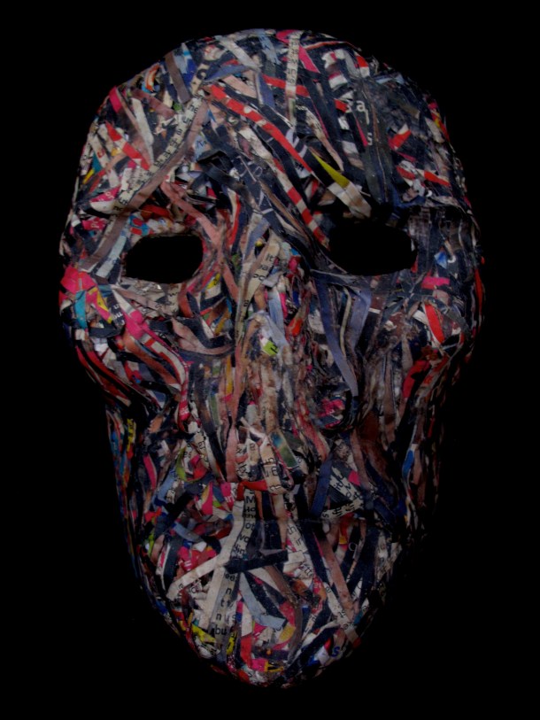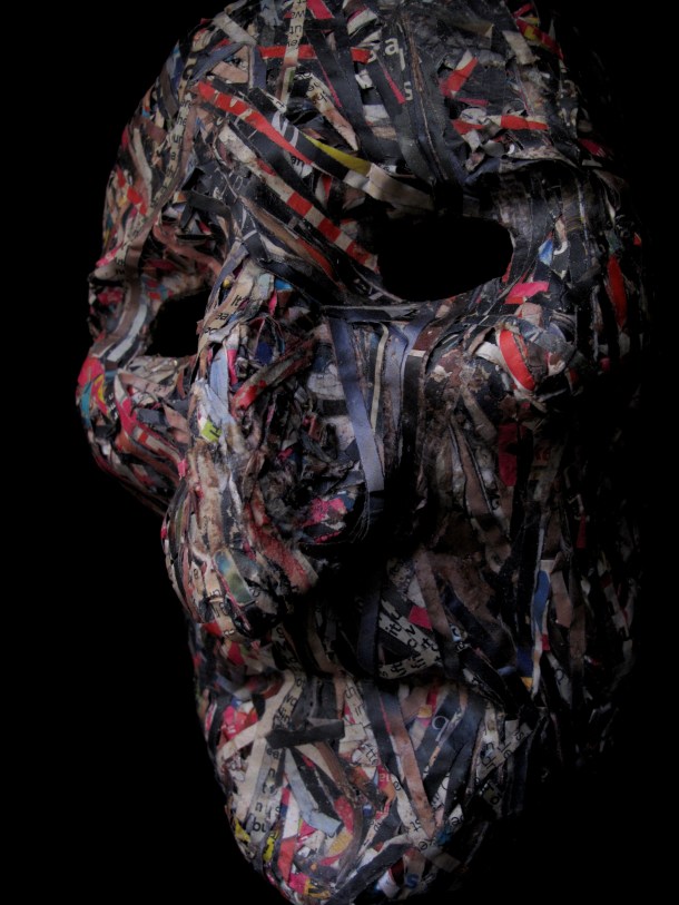 He makes masks in wood, resin, paper and using found materials. You can view three galleries of his work by clicking on the links or sliding through the images: