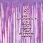 “These songs have been companions, composed at my piano, wandering through streets and sung into cassette recorders on train platforms. I chose to write a song cycle because I wanted to create a work that accumulates, evolves and transforms just as the passage of a grief does. It is also a recognition of the writing process, of assembling fragments into a whole, the arrangement and rearrangement of one’s life that grief demands.