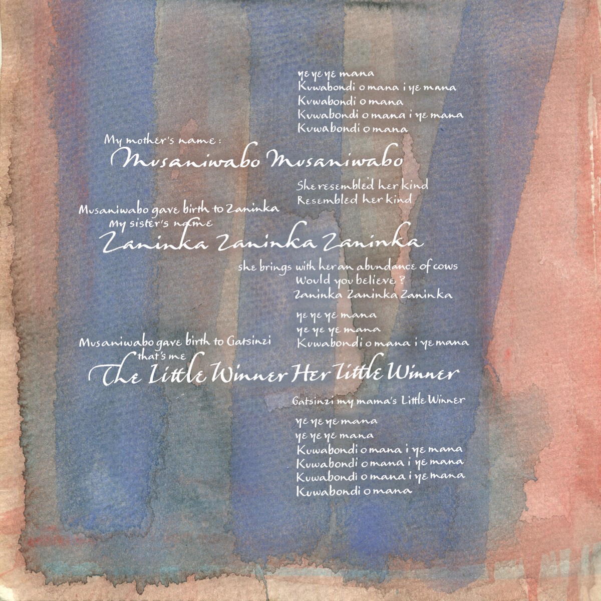 MUSANIWABO ZANINKA GATSINZI Published February 3, 2013 at 4094 × 4094 in Song-cycle ← Previous Next → Like Loading...